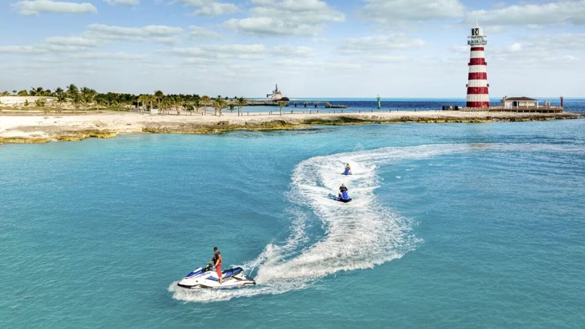 Ocean Cay é rodeada pelas águas cristalinas das Bahamas