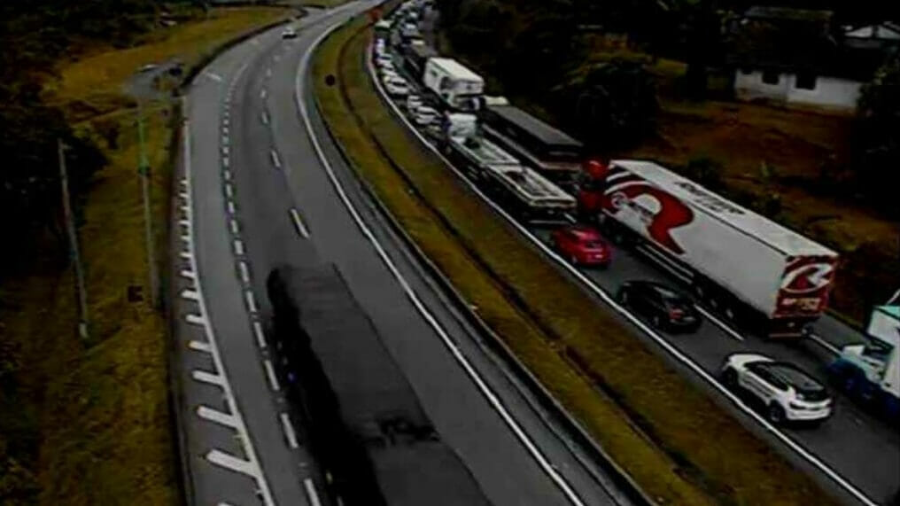 Na descida para Santa Catarina, o congestionamento vai do km 655, em Tijucas do Sul, ao ponto em pista simples, já em Guaratuba. No sentido oposto, a fila tem início no km 682,1.