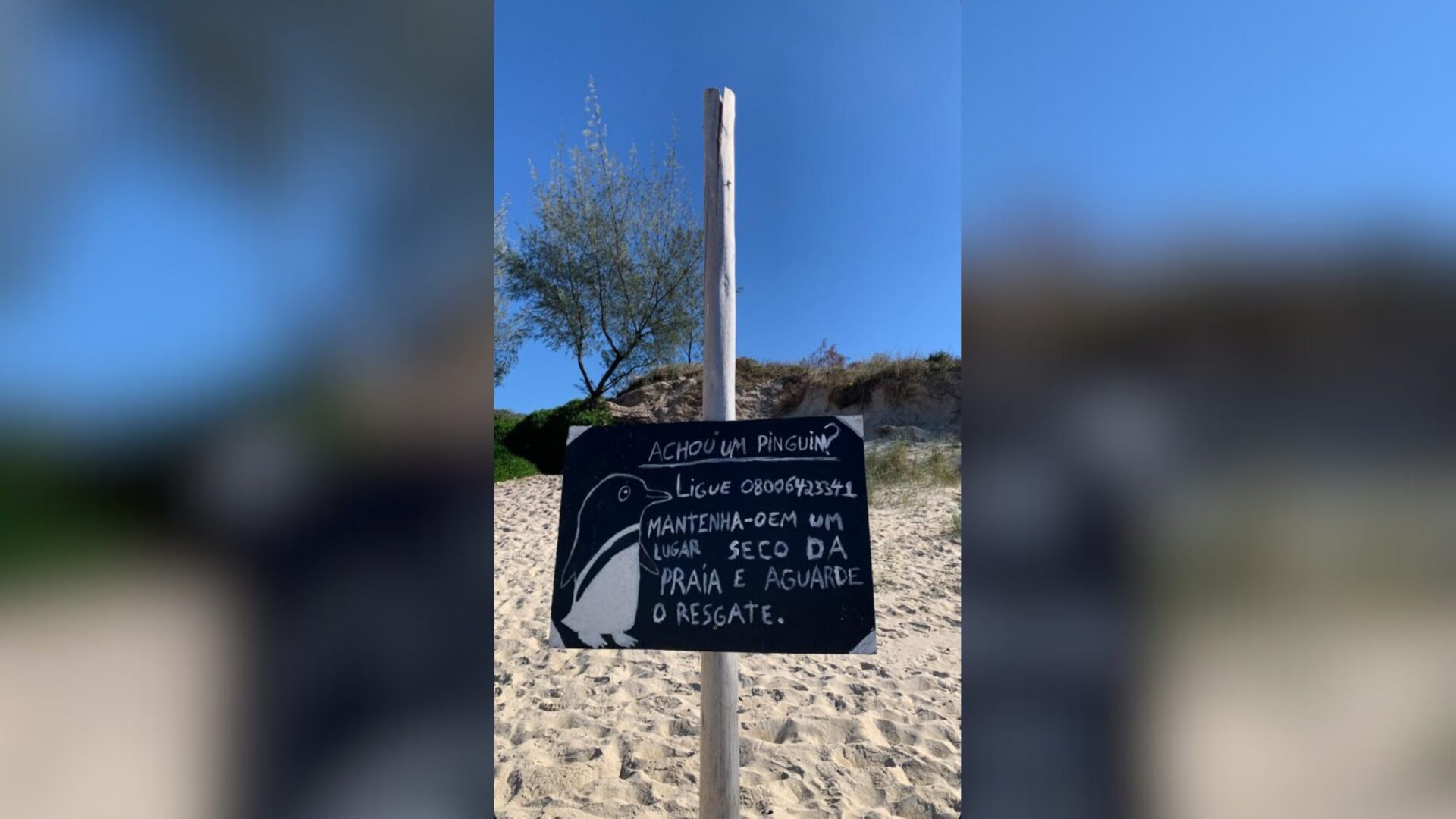 Virginia viu a placa pela primeira vez na última quarta-feira (16) e, na segunda-feira daquela mesma semana, ela já tinha visto um pinguim na areia da praia, morto. Na ocasião, outras pessoas que estavam presentes no local já haviam acionado o resgate, que recolheu o animal.