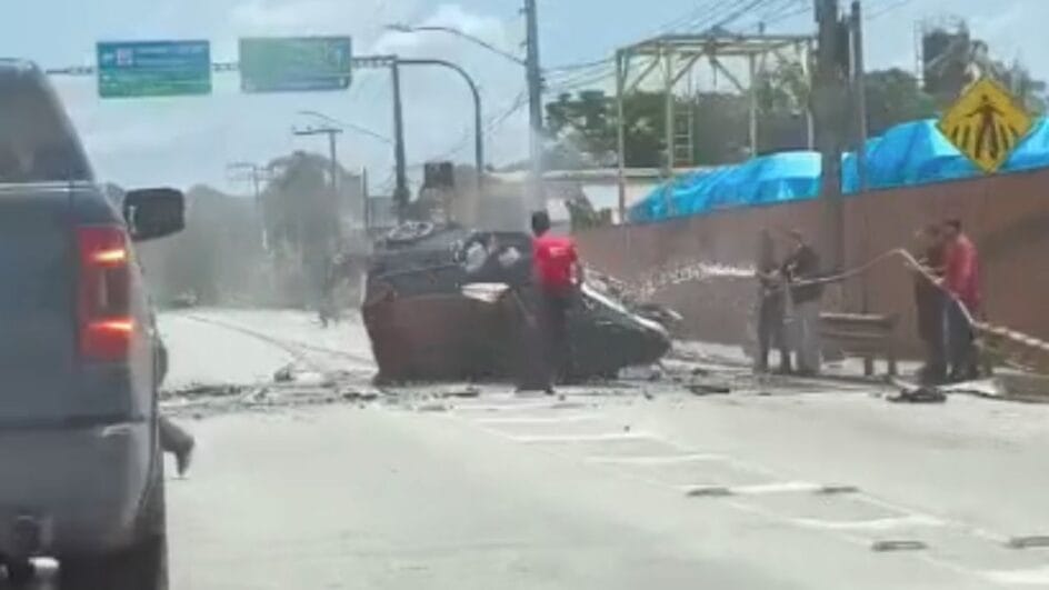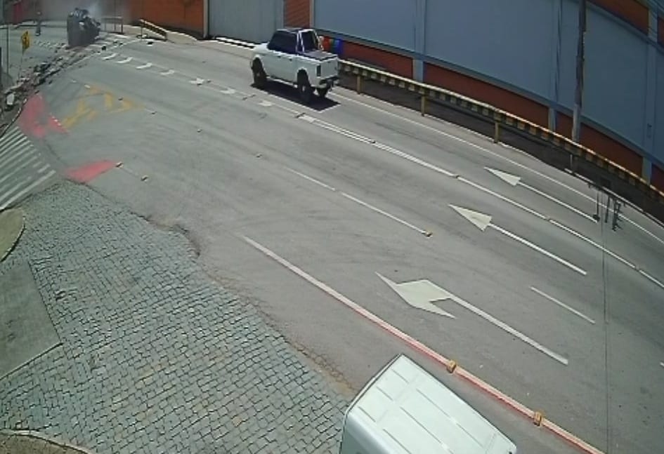 O acidente ocorreu em frente à empresa Círculo, na Rua Doutor Nereu Ramos, uma das vias mais movimentadas de Gaspar. Pelas imagens, é possível observar que, por pouco, o carro, um Mini Cooper, não atingiu um motociclista que passava pelo local. Brigadistas da empresa têxtil usaram mangueiras para evitar que o veículo pegasse fogo.