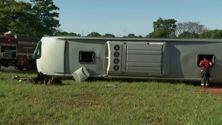 Um ônibus com 43 passageiros tombou na manhã desta quarta-feira (24) em uma rotatória da Rodovia Brigadeiro Faria Lima (SP-326), na entrada de Jaboticabal, no interior de São Paulo. Duas pessoas morreram no acidente, uma criança de três anos e uma mulher, de 30 anos. As informações são do g1.