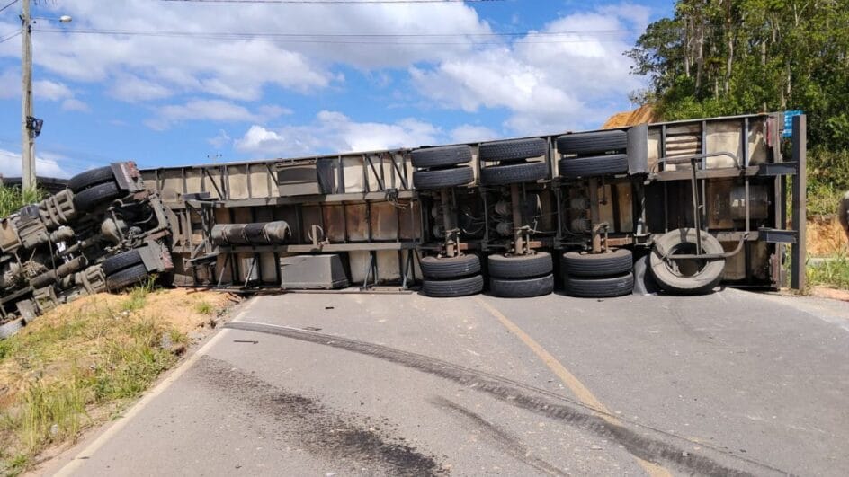 Um acidente com tombamento de caminhão na altura do Km 48 da SC-108 deixou dois feridos nesta terça-feira (3), em Guaramirim. A informação foi confirmada pela Polícia Militar Rodoviária (PMRv) por volta das 15h. As vítimas foram socorridas pelo Serviço de Atendimento Móvel de Urgência (Samu).