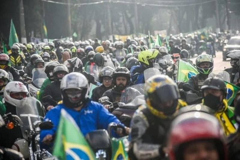 Apoiadores que participavam de “motociata”, em São Paulo, com o presidente Jair Bolsonaro (sem partido), envolveram-se em um acidente na manhã deste sábado (12). A Band News registrou o momento em que um motociclista se desequilibra e é atingido por outros condutores que vinham logo atrás. Vários motociclistas acabaram caindo, em sequência.