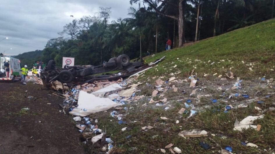 O caso foi registrado às 05h40 no Km 674,3 da rodovia. Segundo a Polícia Rodoviária Federal (PRF), o acidente teve início quando um caminhão bateu na traseira da caminhonete. O carro saiu da pista e o condutor do outro veículo perdeu o controle da direção e acabou tombando. Ambos seguiam sentido a Santa Catarina quando aconteceu a colisão.