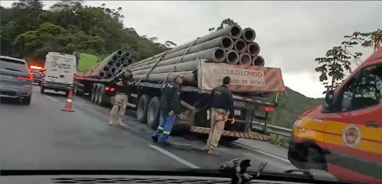Um acidente no começo da manhã desta quarta-feira (27) entre uma carreta carregada de material de concreto e um ônibus deixou feridos na BR-470, em Ilhota, e complicou o trânsito para quem quer chegar à BR-101. Motoristas relatam congestionamentos em ambas as pistas duplicadas no sentido Litoral. Dos 19 envolvidos, seis foram levados ao hospital. Um deles, o motorista, foi ejetado e, apesar de consciente, estava desorientado.