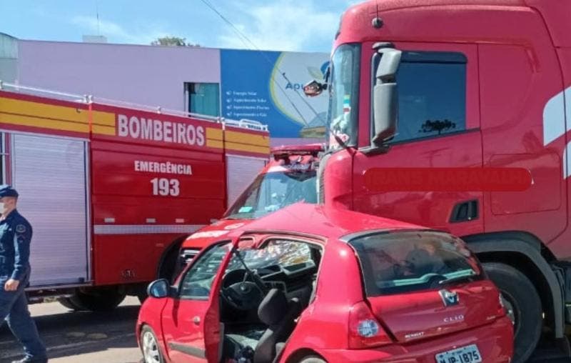 Um acidente envolvendo um carro e um caminhão na BR-282 resultou em morte, em Xaxim, na manhã de sábado (8). A vítima é uma mulher idosa, que, segundo o Corpo de Bombeiros Militar, ficou presa às ferragens.