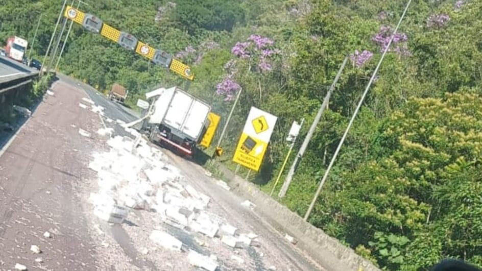 Um acidente entre dois caminhões bloqueou totalmente a BR-376, que liga o Paraná ao Norte de Santa Catarina, na manhã desta quarta-feira (28). Um dos veículos teria batido na traseira do outro. De acordo com a Arteris Litoral Sul, o acidente ocorreu às 8h no Km 668 da rodovia, que passa por Guaratuba, no sentido Sul. O local é descida de Serra.