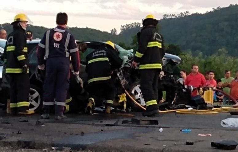 No Virtus com placas de Sapiranga (Rio Grande do Sul) havia cinco pessoas. A menina de um mês voou do bebê conforto e já estava sem vida, sobre o banco traseiro, quando os bombeiros voluntários da cidade chegaram, por volta das 18h. Os pais dela, de 33 e 34 anos, um menino de quatro anos e um homem de 60 foram encaminhados ao hospital com ferimentos leves.