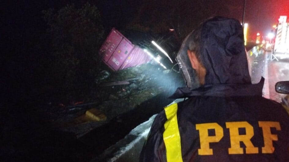 Conforme a Polícia Rodoviária Federal (PRF), a carreta, que era conduzida pelo homem de 30 anos, perdeu os freios e atingiu a traseira da van, que foi projetada à frente e atingiu um carro. Em seguida, a van rodou na pista e o caminhão a arrastou para fora, tombando sobre ela. Ainda de acordo com a PRF, na van estavam 10 ocupantes.