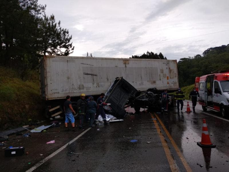 Já o outro caminhão saiu um pouco da pista, mas o motorista ficou ileso. A placa da vítima fatal era de Capinzal.