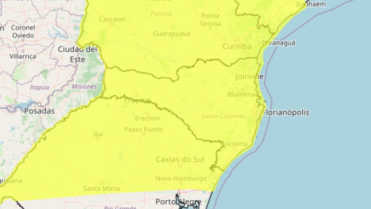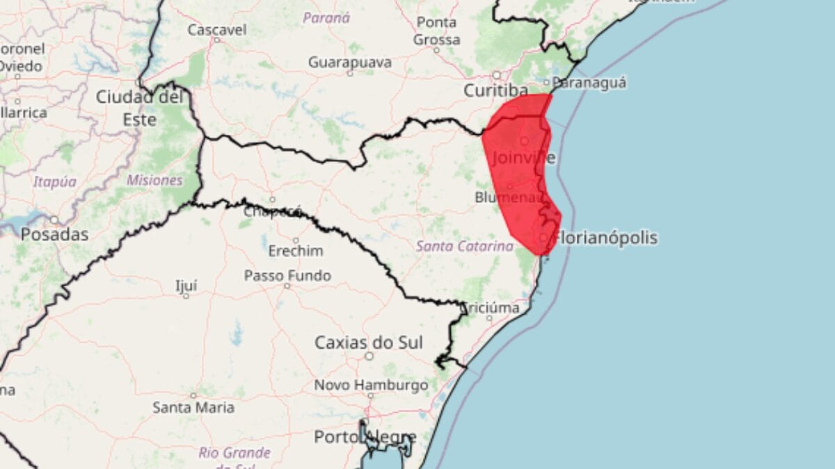 O Instituto Nacional de Meteorologia (Inmet) publicou nesta sexta-feira (13) dois alertas vermelhos de “grande perigo” para acumulados de chuva em Santa Catarina e partes do Rio Grande do Sul e Paraná. As regiões em risco são Grande Florianópolis, Cale do Itajaí, Norte e Oeste.