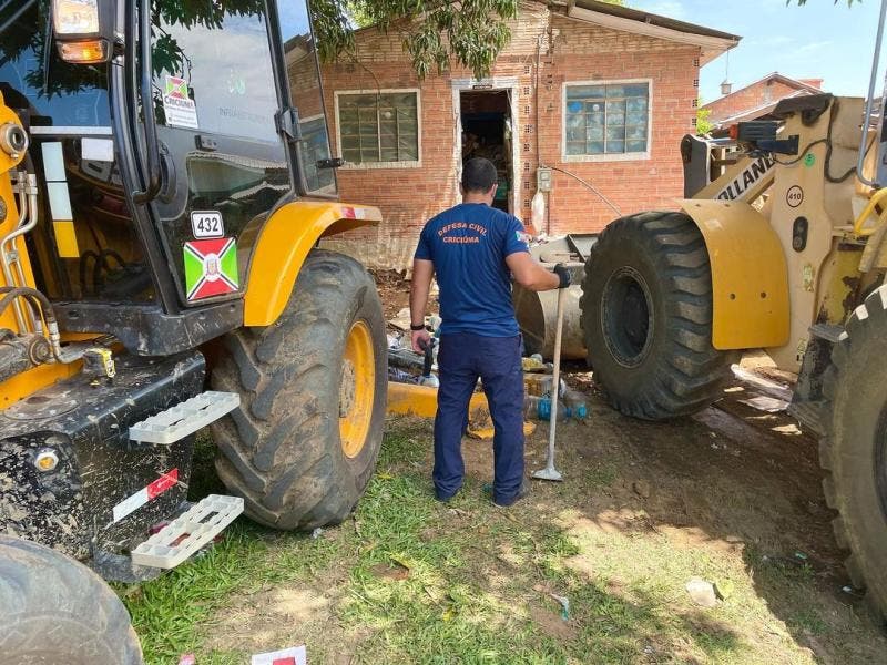 A Defesa Civil de Criciúma encontrou um idoso de 73 anos que acumulava roupas, eletrodomésticos, plásticos e muito lixo em uma casa de aproximadamente 80 metros quadrados, localizada no bairro Fábio Silva.