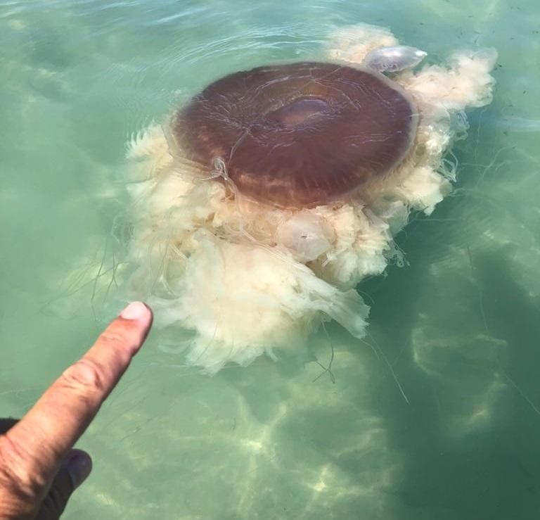Uma visitante rara, com aproximadamente um metro de diâmetro, foi encontrada por um praticante de stand up na última sexta-feira (14), na Ilha do Campeche, em Santa Catarina. A medusa flutuava próximo a areia quando o banhista percebeu sua presença e comunicou um guarda-vidas, bem como o coordenador de mergulhos locais.