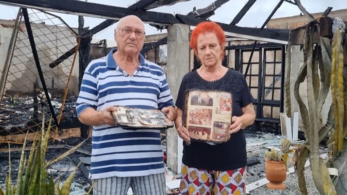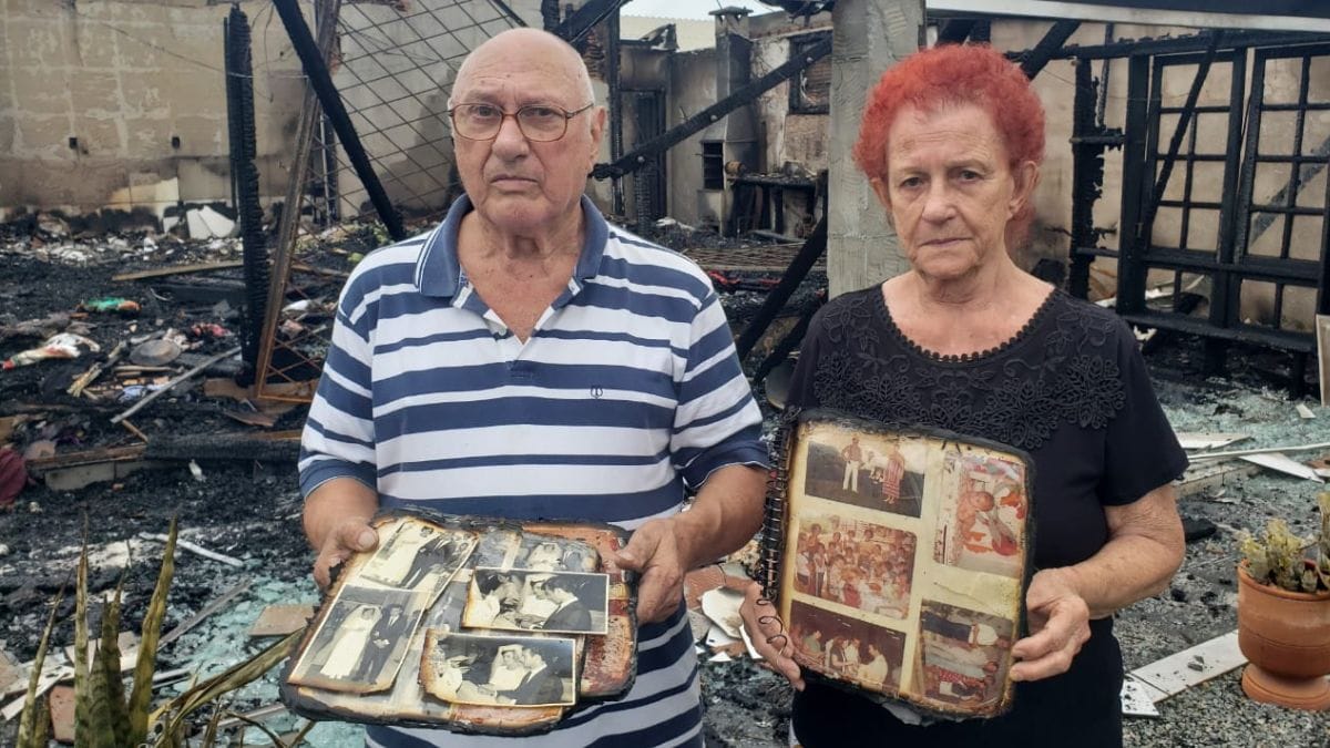 — Quando a gente viu o fogo já estava alto não deu para fazer mais nada — conta Airton. O casal descansava por volta das 13h30min quando o fogo começou. Para não se ferirem, os idosos saíram da casa sem conseguirem salvar nada. A única coisa que não foi completamente destruída pelas chamas foi o álbum de fotos, que traz registros do casamento de quase 60 anos. O restante foi totalmente consumido pelo fogo.