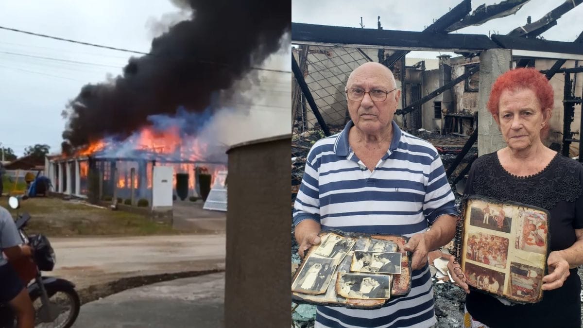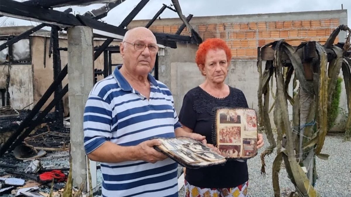 O que seria um começo de semana comum tornou-se uma tragédia para o casal de idosos aposentados Airton José Raitz e Marta Raitz, moradores de Balneário Barra do Sul. Eles descansavam na rede de casa após o almoço quando, de repente, viram que a residência pegou fogo. As chamas já estavam tão altas que não deu tempo de salvar nada material, apenas a si mesmos. O incêndio atingiu a casa da família na última segunda-feira (10), oito dias antes de Marta completar 76 anos.