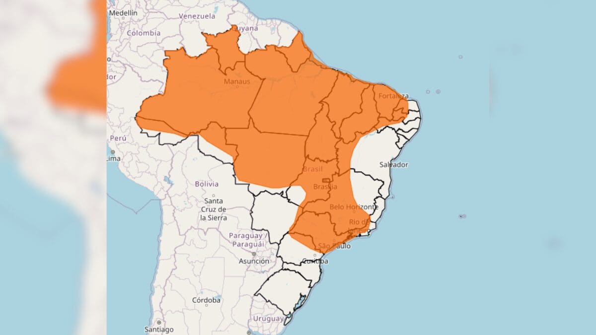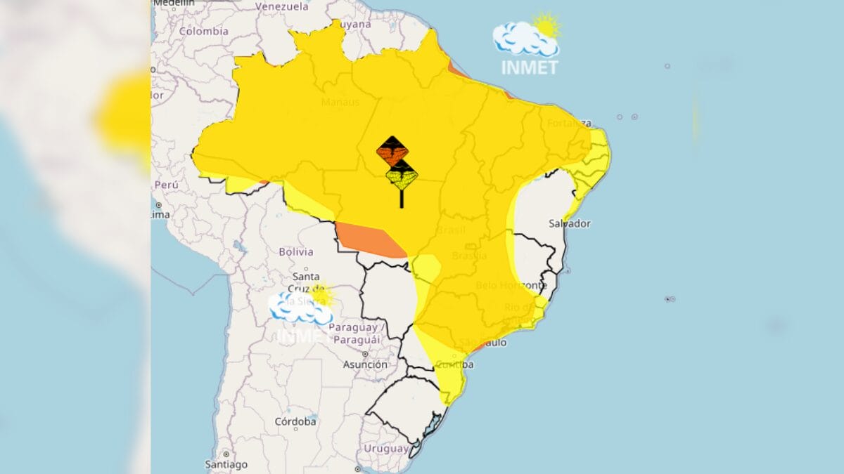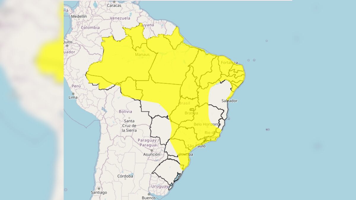 Neste alerta, também estão enquadrados os outros três estados que não faziam parte da rota do alerta laranja. Dessa forma, todos os estados foram colocados, em algum nível, em alerta para chuva.