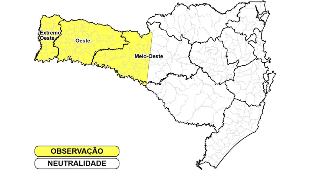Em Santa Catarina, entre este sábado (7) e a manhã de domingo (8), a aproximação e atuação de uma nova frente fria traz temporais e chuva pontualmente intensa ao Estado, especialmente entre a Grande Florianópolis, partes do Vale do Itajaí, Litoral Norte, Litoral Sul e menores áreas dos Planaltos, conforme a Defesa Civil.
