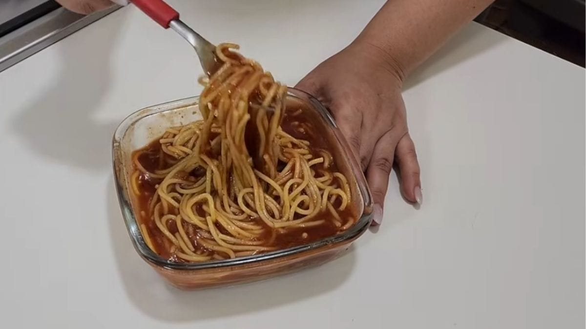 Primeiro, cozinhe o macarrão por alguns minutos no fogão. Mexe delicadamente. Enquanto isso, prepare o molho com duas colheres de molho de tomate, extrato de tomate e água. Acrescente os ingredientes que desejar.