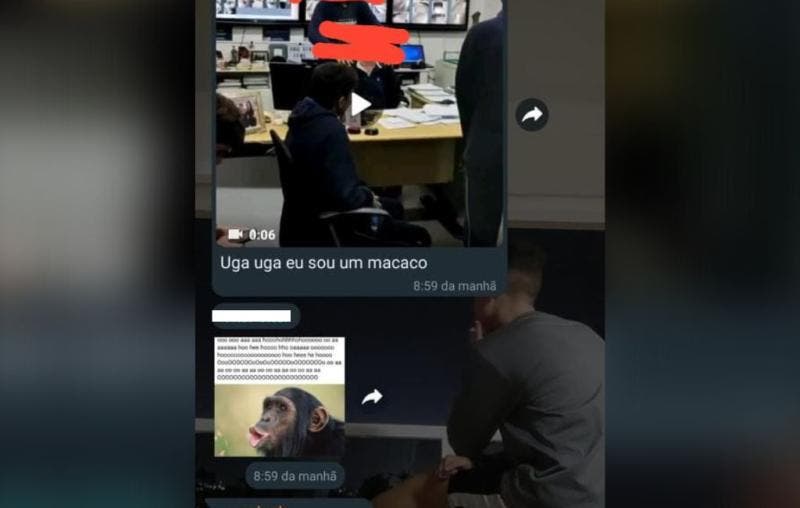 “Uga uga eu sou um macaco”, escreveu um dos colegas do jovem no grupo como legenda de um vídeo em que o estudante aparece. Além da filmagem, também é compartilhada a foto de um macaco.