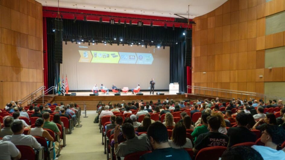 A programação do primeiro dia incluiu painéis sobre o futuro da IA, sua aplicação na educação, computação quântica, visão computacional e empreendedorismo brasileiro.