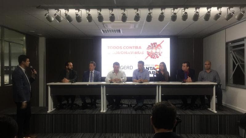 O governador Carlos Moisés da Saúde, acompanhado de representantes do Judiciário, Legislativo e Ministério Público, anunciam na noite desta terça-feira (17) novas medidas para conter o avanço do coronavírus em Santa Catarina.