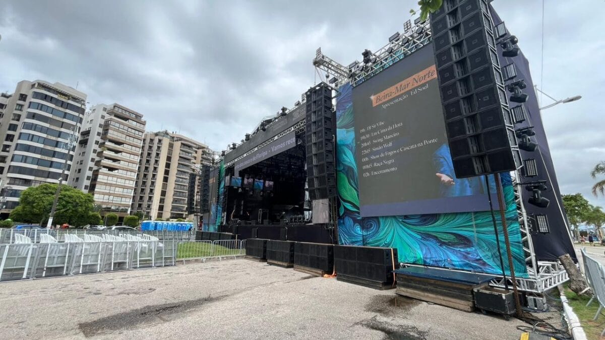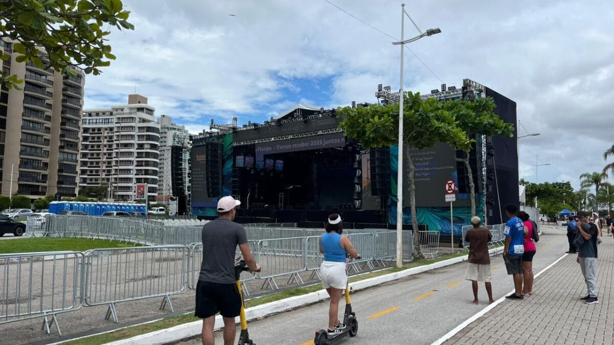 Por volta das 15h30min desta quarta-feira (31) técnicos faziam os últimos ajustes de som para o show na Avenida Beira-mar Norte, em Florianópolis. O público também já começava a chegar, alguns usando roupas brancas, inclusive.
