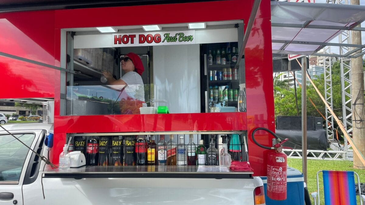 Para além da diversão, os preparativos dos comerciantes que trabalham na virada do ano em Florianópolis começaram cedo. É o caso da vendedora de choripan Kátia Regina Corrêa da Silva, que está na Beira-mar Norte desde a manhã desta quarta-feira.