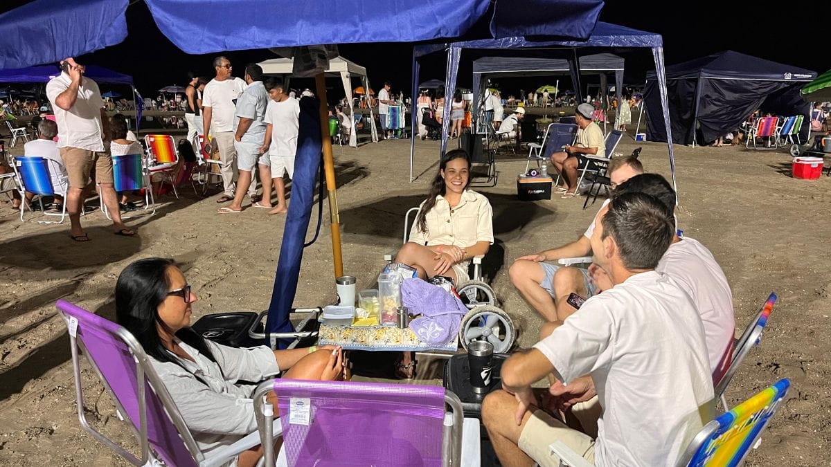 Sundy de Souza, de 43 anos, montou uma tenda com a família com direito a espetinho. Naturais de São José, elas contam que acompanham a virada do ano na Beira-Mar continental há pelo menos cinco anos. Porém, neste ano, uma motivação especial levou Sundy para o local: o show do cantor do Dilsinho, que aconteceria daqui algumas horas.
