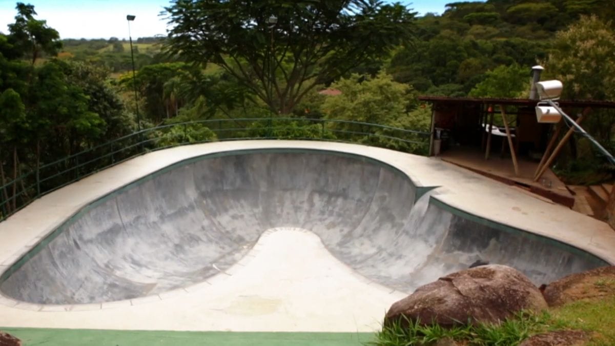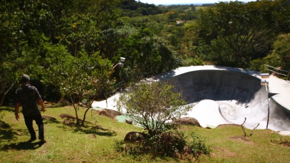 O que chama a atenção na propriedade não é apenas o luxo rústico do lar, mas também o quintal. O manezinho construiu seu próprio skate park particular para incentivar a modalidade na Ilha. O complexo conta com um bowl e um halfpipe em formato de “U”. A residência já sediou até eventos internacionais, como o Red Bull Skate Generation.
