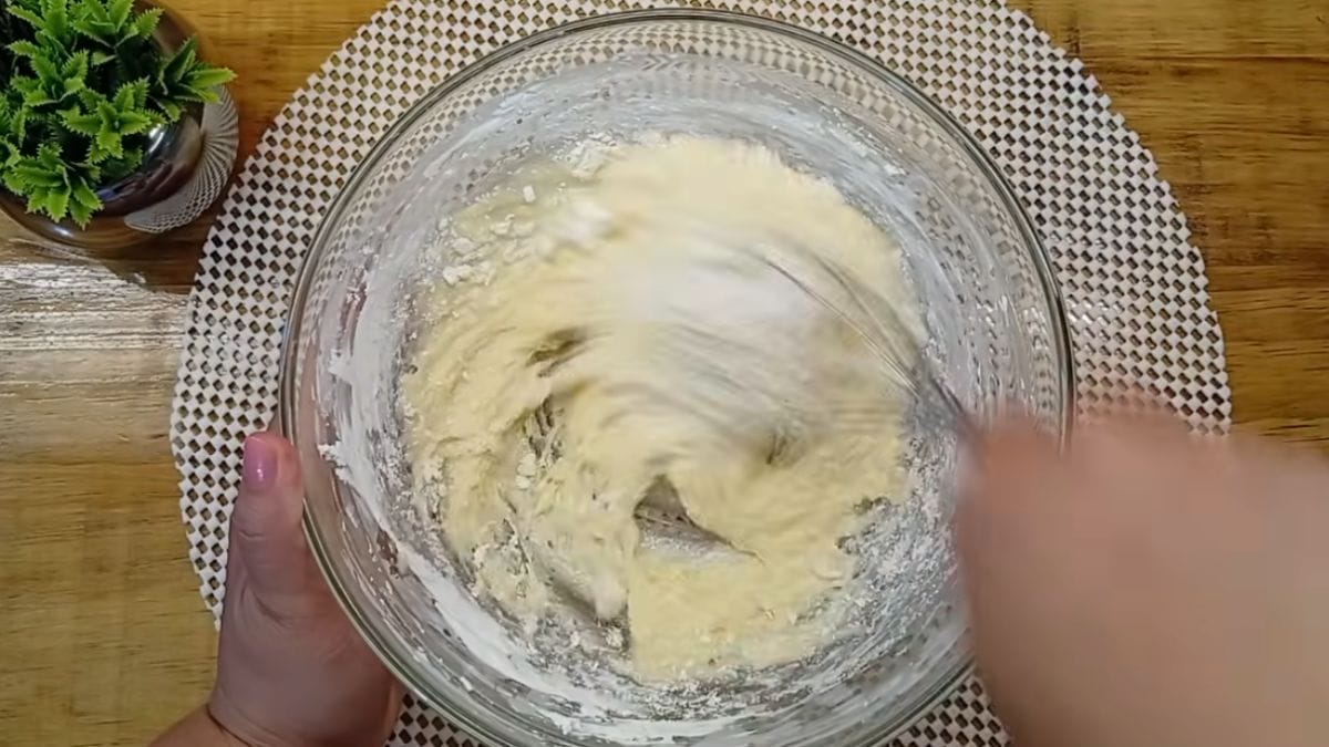 Agora, coloque o amido de milho e mexa novamente até atingir a textura necessária. Agora, acrescente o fermento e misture bem.