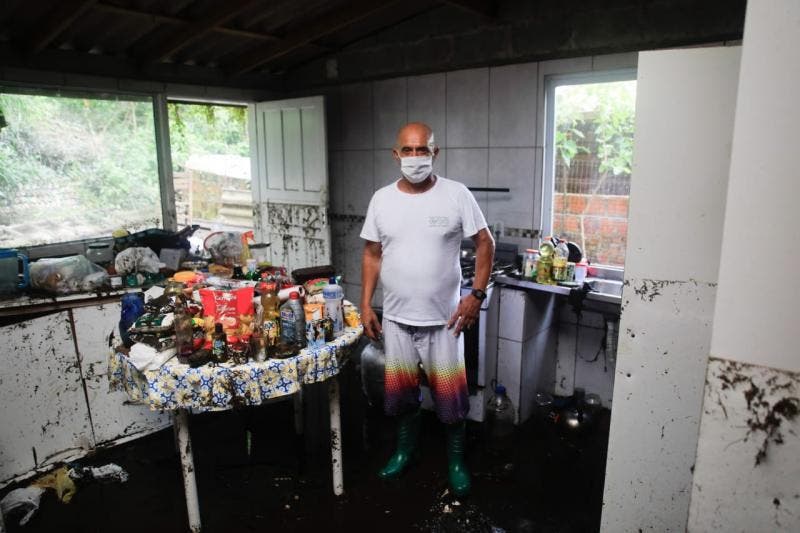 Edson perdeu a casa e o carro, que não tinha seguro, no alagamento, mas diz que o mais impotante é que a família conseguiu se salvar: “Agora é recomeçar”.