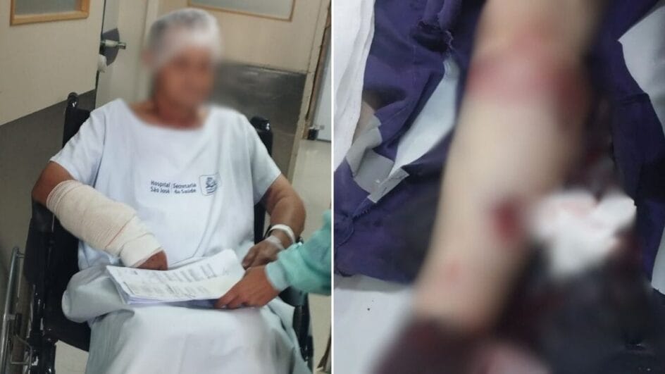 Sebastião tentou afastar o cachorro, mas quando colocou seu braço direito para a frente, o pit bull o atacou novamente.