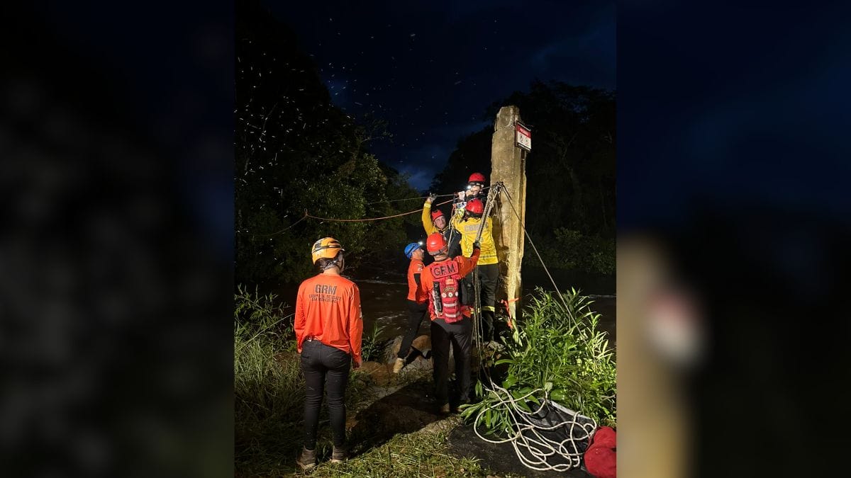 O GRM permaneceu em prontidão em dois pontos estratégicos às margens do rio, utilizando sacos de arremesso como medida de segurança adicional. Para a travessia, foi usado um cabo de aço previamente instalado pelo departamento de infraestrutura da prefeitura, sendo montado um sistema de “vai e vem” para a transposição dos indivíduos.