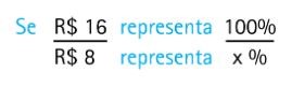 A entrada original R$ 16,00 representa 100%. Passou a custar R$ 24,00, ou seja, aumentou R$ 8,00 (R$ 24,00 – R$ 16,00). O problema quer saber qual é esse valor de aumento, só que em porcentagem.