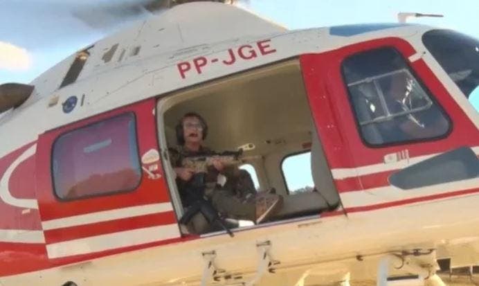 Em vídeo publicado em suas redes sociais, nesse sábado (19/6), a parlamentar aparece em um helicóptero, com roupa camuflada, armada e diz que segue rumo à Cocalzinho para capturar o foragido.