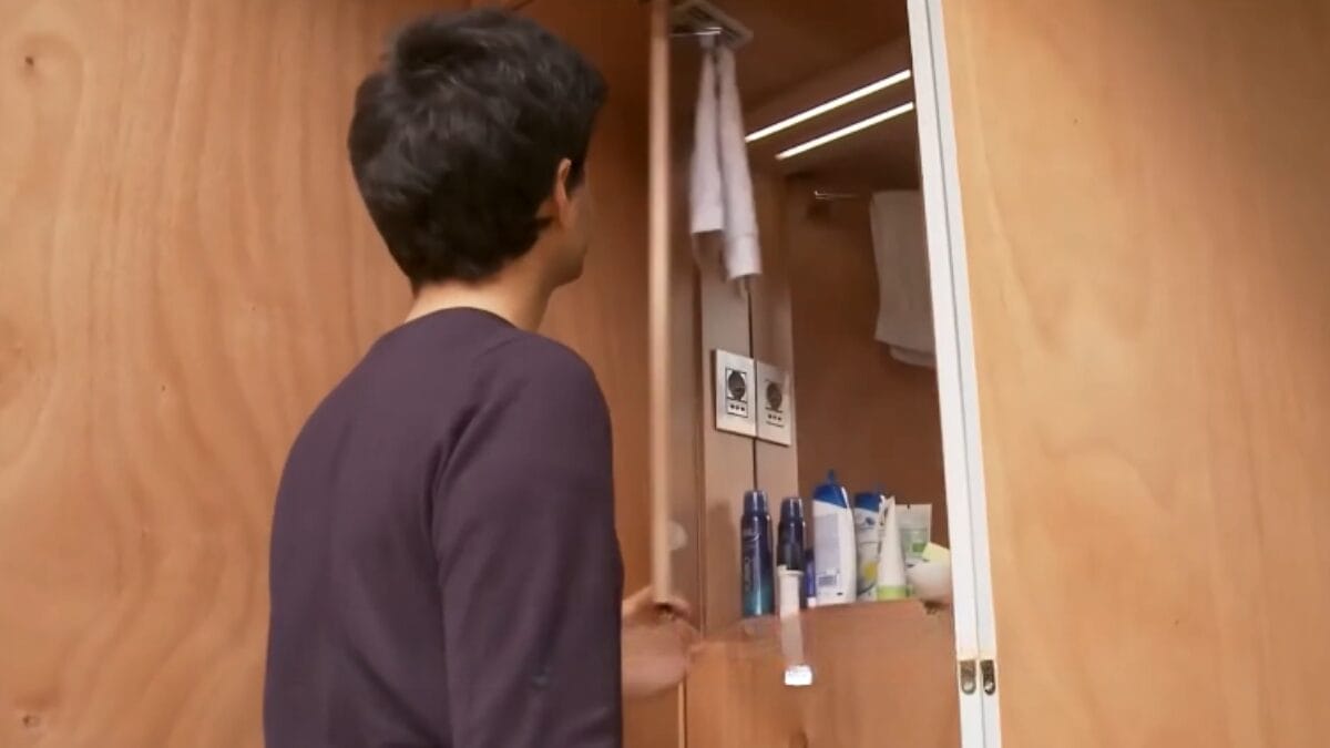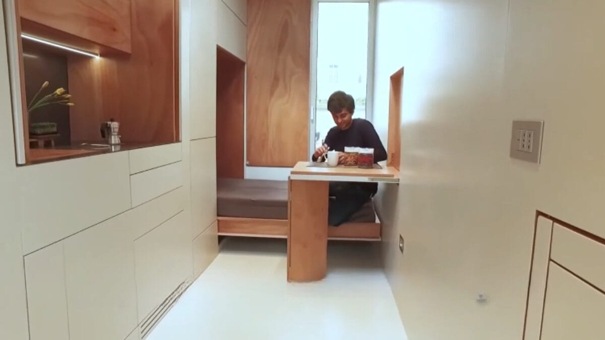 Leonardo, em entrevista ao Gazzetta, descreve o ambiente como “uma casa de um cômodo só” totalmente adaptável. Os móveis dobráveis permitem que a cozinha e o quarto coexistam sem atrapalhar a circulação interna.