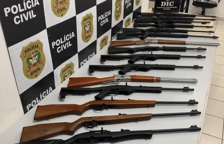 As armas que foram levadas de uma loja no bairro Glória, em Joinville, foram recuperadas na tarde de quinta-feira (9), três dias após o furto. Em coletiva de imprensa na manhã desta sexta-feira (10), a Polícia Civil divulgou detalhes da investigação, que apontou que o crime foi encomendado por uma facção criminosa que atua na cidade e na região.