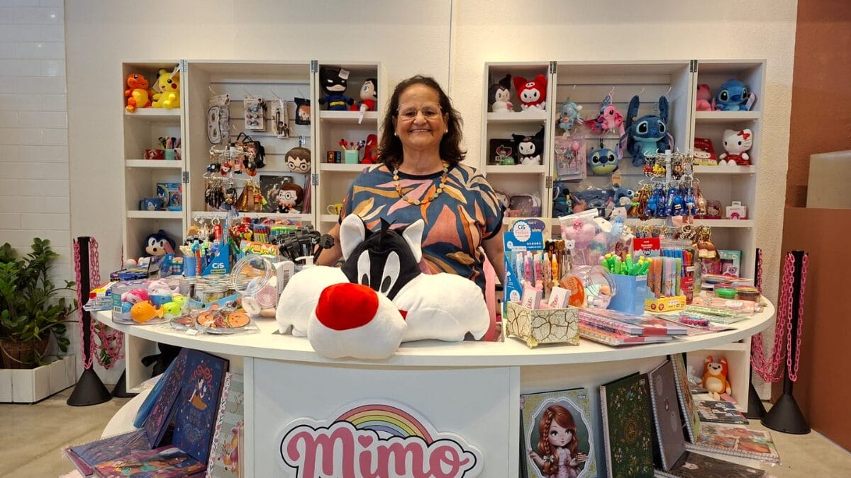 A Mimo Papelaria e Presentes reúne produtos de papelaria e pequenos objetos para presente selecionados a partir da experiência de Eva no contato com o público. O espaço oferece itens como cadernos, planners, blocos, canetas colecionáveis, adesivos, mochilas, lancheiras e estojos, além de pelúcias, chaveiros, brinquedos lúdicos, massinhas e outros presentes de pequeno porte.