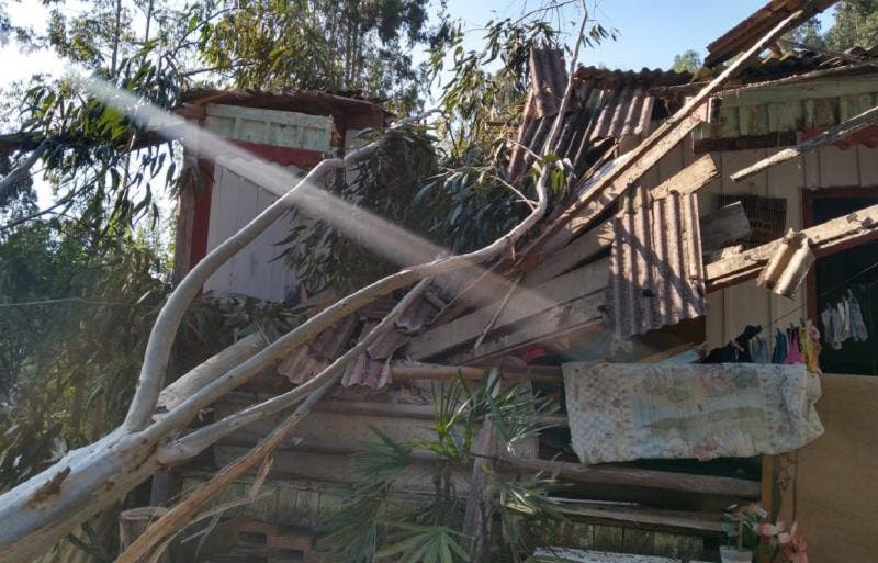 Metade da casa construída em madeira ficou destruída. A residência tinha cerca de 70 metros quadrados, e teve danos na varanda e em dois quartos. O telhado também foi derrubado. Os bombeiros cortaram a árvore com motosserra e ajudaram o morador a retirar os galhos e troncos de dentro da casa.