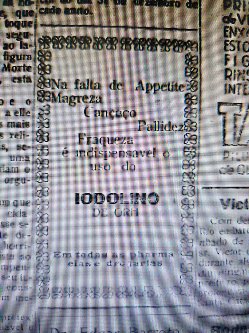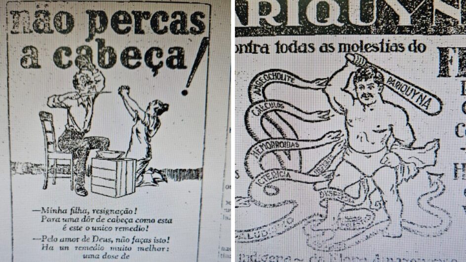 São propagandas de remédios, alimentos e suplementos que divertem devido ao estilo da escrita da época e dos desenhos criativos (veja na galeria abaixo). Em uma delas, por exemplo, o texto diz que os “pallidos, magros e enfraquecidos” precisavam tomar um tônico para ter “apetite, sangue e vigor”. Em outra, as “dores nas cadeiras” aparecem em uma “receita para conservar a mocidade” e acabar com a condição.