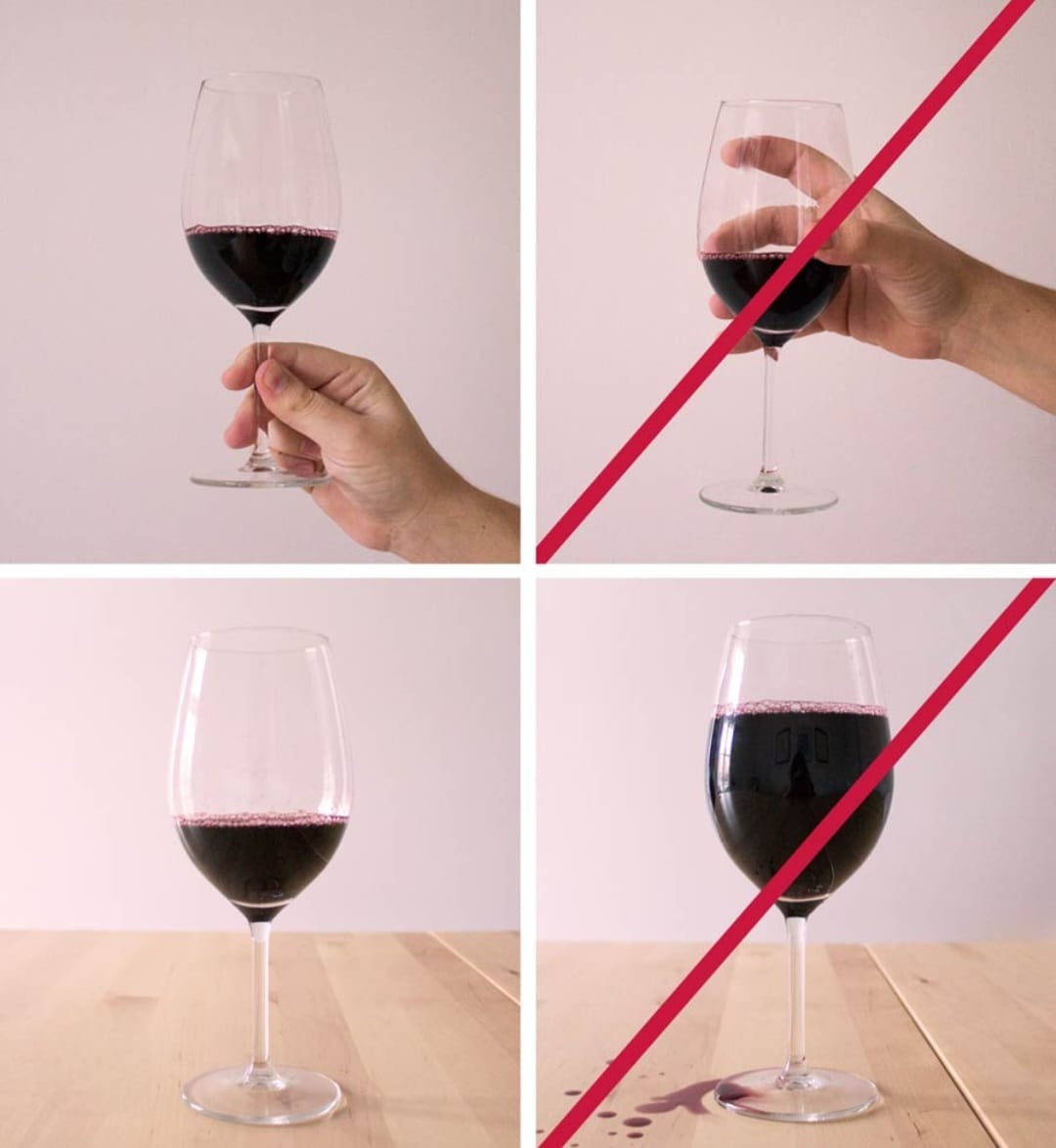 E não esqueça: sempre segure sua taça pela haste, nunca pelo bojo. Isso não é estética, mas funcionalidade: sua mão não deve aquecer o vinho, que deve estar na temperatura de serviço adequada.