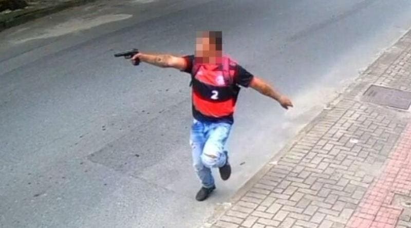 Ao fugir do local, eles foram filmados por câmeras de monitoramento da região, que flagraram um dos suspeitos apontando a arma para um carro que estava passando na rua. De acordo com a PM, os dois homens furtaram uma moto para facilitar a fuga. Porém, ela foi abandonada minutos depois.