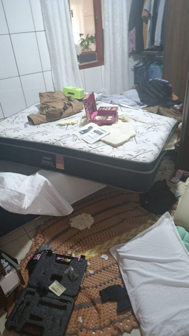 Conforme a PM, os assaltantes entraram em duas casas e levaram os moradores para uma terceira residência. Lá, as vítimas foram aterrorizadas pela dupla, que as amarrou, agrediu e ameaçou. O filho mais novo de um casal chegou a ser usado como moeda de troca pelos bandidos.