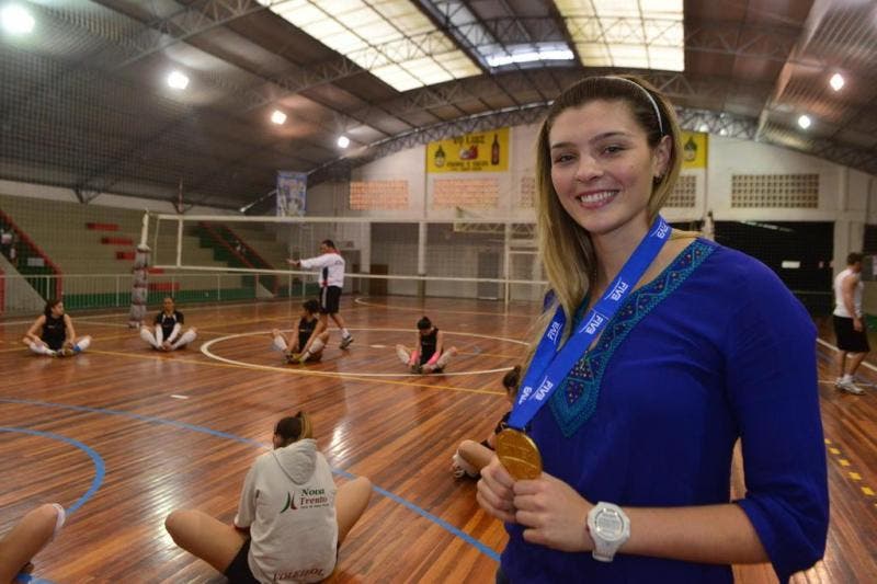 Depois de jogar o Pan de Toronto, onde conquistou a medalha de prata, a menina de Nova Trento conquistou espaço no grupo verde-amarelo e nesta terça-feira se apresenta em Saquarema (RJ) para se juntar à equipe que vai disputar um quadrangular fim de semana diante de Alemanha, Bulgária e Holanda. Mais um passo para a jovem na caminhada rumo a um lugar na equipe que defenderá o país nos Jogos Olímpicos do Rio de Janeiro, ano que vem.