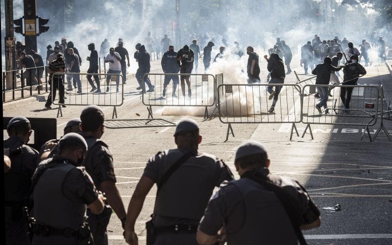 Integrantes de diferentes torcidas organizadas dos quatro grandes clubes de São Paulo (Corinthians, Palmeiras, Santos e São Paulo) organizaram atos pró-democracia na Avenida Paulista neste domingo (31). Os atos, que começaram pacíficos, acabaram em confronto com a Polícia Militar e apoiadores do presidente Jair Bolsonaro (sem partido).