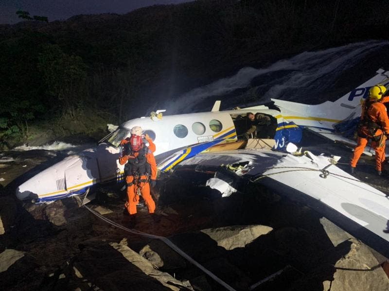 Marília Mendonça morreu em um acidente de avião no dia 5 de novembro de 2021, quando o avião em que estava caiu perto de uma cachoeira em Piedade de Caratinga, Minas Gerais – (Foto: Corpo de Bombeiros de MG/AFP)