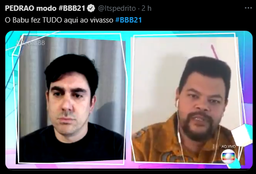 — PEDRAO modo #BBB21 (@Itspedrito) April 6, 2021Continua depois da publicidade