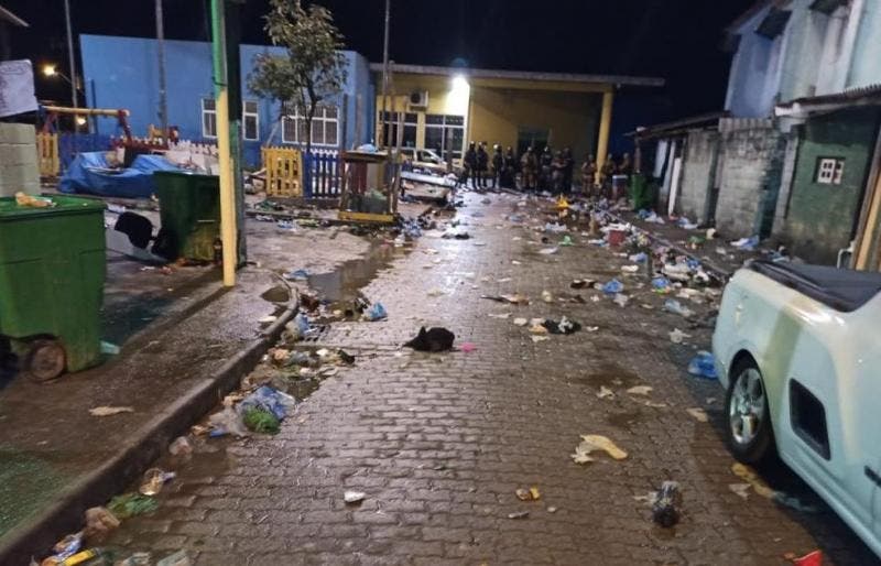 Segundo a estimativa feita pelos policiais assim que chegaram ao local, havia cinco mil pessoas aglomeradas na rua. Elas também não usavam máscara, contrariando todas as recomendações de prevenção ao coronavírus. Após a dispersão da multidão, as ruas ficaram com muito lixo.