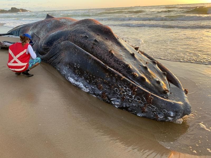 Uma baleia-jubarte adulta de 12 metros de comprimento e 20 toneladas encalhou na noite de quinta-feira (10) na Praia Grande, em São Francisco do Sul. Quando foi resgatada, ela ainda estava viva, mas morreu na manhã desta sexta-feira (11). Em 2020, seis jubartes já foram encontradas encalhadas em Santa Catarina.