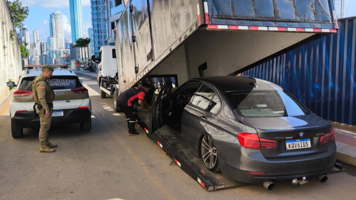 No domingo, a operação também fiscalizou denúncias de “racha” na Avenida Atlântica, na esquina com a Rua 1131. Ao chegar ao local, agentes da BC Trânsito encontraram um veículo em princípio de incêndio, já com o condutor fora do carro.